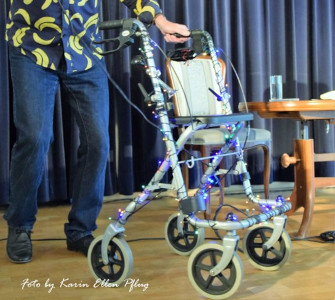 Diese vier unterschiedlichen Künstler sorgen dafür, dass es thematisch und kompositorisch alles andere als langweilig wird, wenn DONATO PLÖGERT sein Publikum nicht nur zwecks Alltags-Problem-Lösung mit in die nächste "Eckkneipe" nimmt, sondern auch mit ihm zusammen das "Palais Madame" besucht, seines Zeichens DER Berliner Anbagger-Schuppen für die im Herbst ihres Lebens stehende Damen und Herren. Ebenso lädt er die Zuschauer ein, ihn in Form eines beSWINGten Liedes auf einer lebensbedrohlichen Rad(Tor)tour durch die Straßen Berlins zu begleiten, um anschließend in einem anderen Titel sachlich-vergnügt festzustellen, welch` wichtige Örtlichkeit in den Berliner S-Bahn-Waggons fehlt.